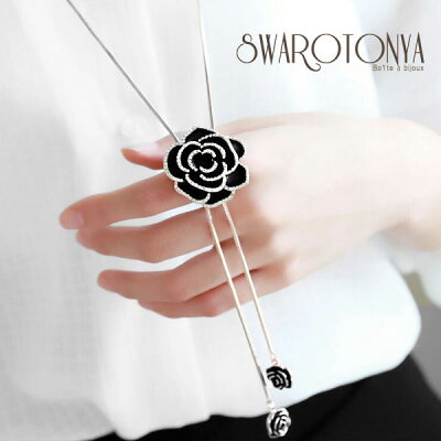 ブラック ローズ ラリエット ロングネックレス Y字 /ラリエットネックレス/バラ 薔薇/大人可愛い 上品 デイリー 安心 ブランド 金属アレルギー 結婚式 プレゼント ジュエリー アクセサリー ニッケルフリー 女性 スワロ問屋