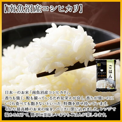 品名 新潟県 南魚沼産 コシヒカリ 備蓄パックごはん200g 計30パック レンジ 簡単 巣籠 セット 商品概要 新潟県産南魚沼市で収穫された「ごはん」を200gパックでお届けします。