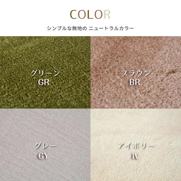 お部屋を選ばず扱いやすいシンプルな無地で、今っぽいニュートラルカラーを取り揃えました! 約3mmのウレタンをサンドすることにより、ボリュームアップ! 裏面は不織布加工で 床を傷つけにくくなっています。