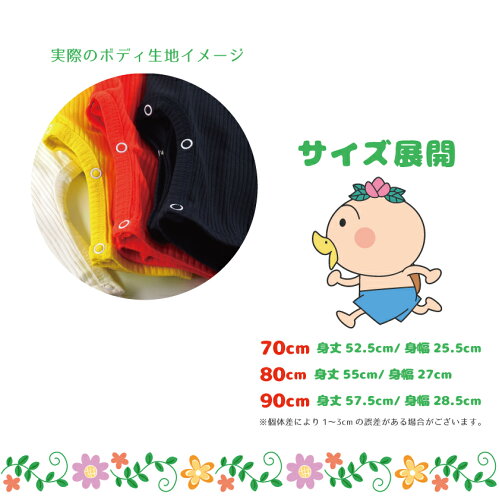 はなかっぱと愉快な仲間たちのかわいいグッズを取り揃えました! 対応サイズ: 70 身丈52.5cm /身幅25.5cm 80 身丈55cm /身幅27cm 90 身丈57.5cm /身幅28.5cm ※アパレル商品のため同じサイズでもサイズ感に個体差が生じる場合がございます。