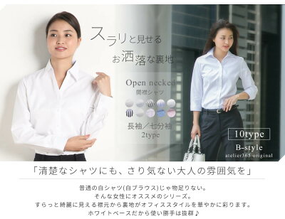 [P5倍_7/26 10時迄]【開襟】レディース シャツ 【メール便で送料無料】 開襟 ブラウス オフィス ワイシャツ 長袖 七分袖 定番 白 レギュラー 開襟 ホワイト ビジネス 形態安定 /● l-23-open[期間対象]【制服】【2枚の場合は2通で発送】【10】