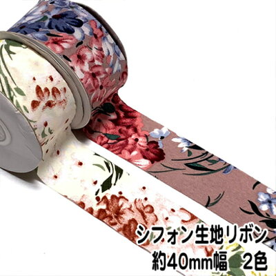 シフォン生地リボン 花柄C約40mm幅 【2色】こちらの商品は【1m単位計り売り】での販売となります。