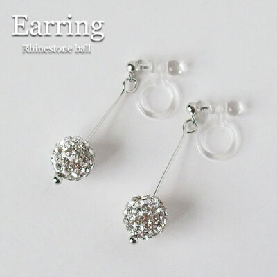 【新着入荷】イヤリング ラインストーンボール オメガイヤリング レディース 両耳用 1ペア販売 コットン玉 クリアストーン パヴェボール ポリカーボネート製イヤリング オメガ型 ぶら下がり 揺れる キラキラ オールシーズン 【RCP】