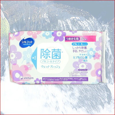 シルコット 除菌ウェットティッシュ アルコールタイプ ヒアルロン酸配合 つめかえ用 40枚 32個(8個入×4パック)【ユニ・チャーム unicharm】【47778 kzh】