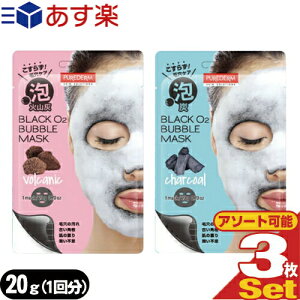 【あす楽発送 ポスト投函!】【送料無料】【泡シートマスク】PUREDERM(ピュアダーム) ブラックO2(オーツー) バブルマスク(BLACK O2 BUBBLE MASK) 泡炭酸パック 20g(1回分) × 3枚セット (アソート可能/炭・火山灰)【ネコポス】【smtb-s】